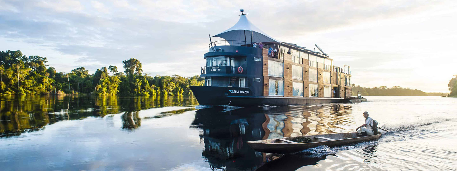 The 147-foot-long, M/V Aria is a premium 5* ship that cruises on the northern Amazon River in Peru. It was entirely custom built by Peruvian architect Jordi Puig to offer an extraordinary level of comfort to guests and was launched in April 2011.In the dining room, guests also savor the best of Peruvian cuisine with a comprehensive dining menu created by Pedro Miguel Schiaffino, one of Peru’s most accomplished chefs known for using produce and ingredients from the Peruvian Amazon.
