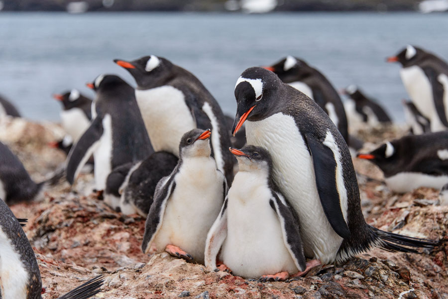 Spot penguins from your zodiac or hiking in Antarctica. Common species on the peninsula are the Gentoo, Chinstrap and Adelie penguins.