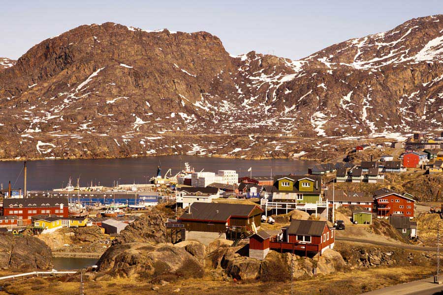 Sisimiut is Greenland’s second-largest city, with around 5,400 residents. Inhabited since 2,500 BC by Paleo-Inuit peoples, the area holds ancient remains on nearby Tele Island, which can be reached on a refreshing hike. Founded as Holsteinsborg in 1756, Sisimiut features well-preserved historic buildings like the Blue Church from 1775, situated in the city’s charming museum quarter. Today, Sisimiut is a key hub for education and industry, hosting one of Greenland’s largest fish processing plants and the supply company KNI, which services remote settlements. The city blends traditional and modern Arctic life—explore the cultural center Taseralik, the city museum, and the famous art workshop, and taste Greenlandic delicacies.