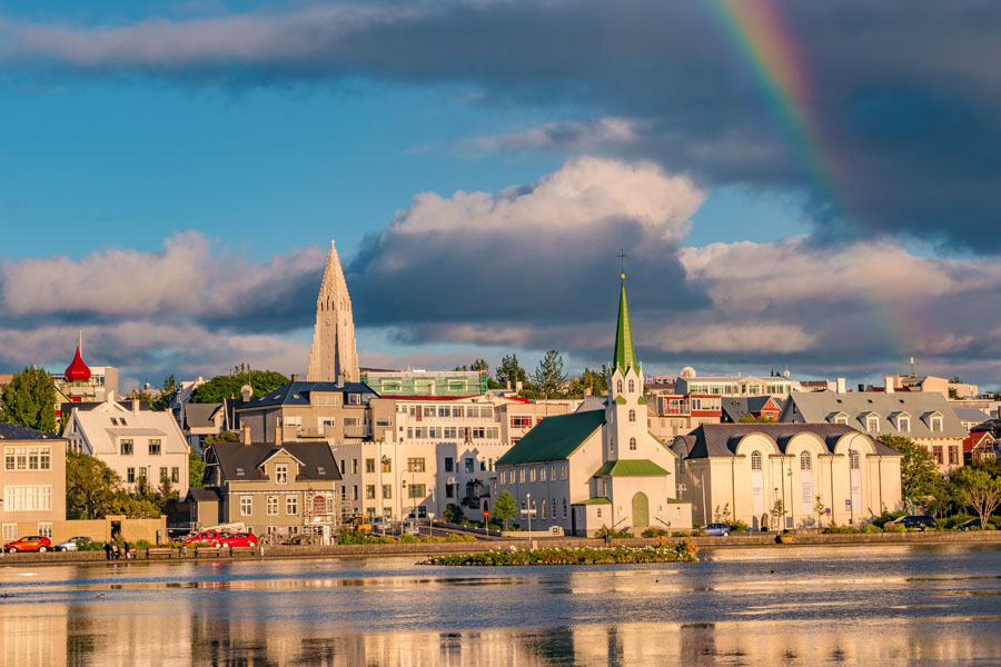 Iceland’s capital stretches along the edge of a vast bay in the west of the country. Perlan, the “Pearl of Reykjavík”, a museum located on ’Oskjuhlið hill, offers a panoramic view of the lush, green landscapes. A little further, one can easily spot the signpost showing the way to the evangelical Hallgrímskirkja church, and to the historical centre where one can stroll along the Skólavördustígur and the Laugavegur, two lively streets with charming small shops. For some relaxation just outside of the city, visitors have the opportunity to visit the Reykjanes peninsula and its famous thermal lagoons of the Blue Lagoon.