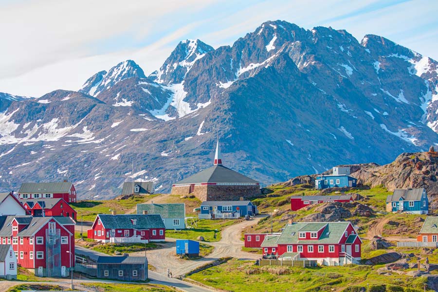 When Erik Le Rouge, the exiled Norse chief, landed on the coast of Nuuk, he found a fertile and welcoming land dotted with fjords. He settled there with a group of his former countrymen, and the Norse remained the principal inhabitants until, over a period of 500 years, their population declined and gave way to the Inuit. Nuuk is situated at the mouth of one of the largest networks of fjords in the world, where the waters never freeze. The town spreads gently out towards the Davis Strait and enjoys an historic center that is particularly rich in national heritage. The vivid reds, blues, greens and yellows of the houses are a lively contrast to the somber waters of Greenland and serve to lift the spirits of the locals during the Winter months.