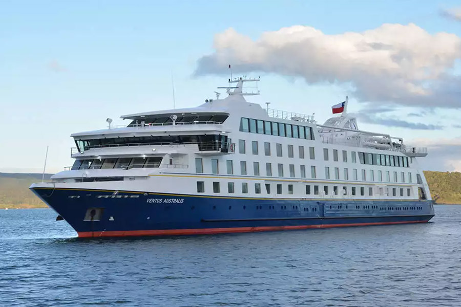 The Ventus Australis is a awe-inspiring cruise ship, launched in January 2018. Tailor-made for exploring the remote southern tip of South America, all aspects of the 210 passenger ship including size, length, draft and engine power are designed to give Ventus Australis the extreme maneuverability necessary to navigate narrow fjords and channels where no other cruise ship can venture. Ventus Australis will feature the latest regulations regarding safety at sea and protecting the marine environment, as all of Australis Patagonia fleet does. With 110 spacious cabins featuring cozy beds, full bathrooms and panoramic views of the Patagonian nature unfolding outside. The pampering continues in the dining room with buffet breakfasts and lunches and four-course dinners that blend continental and Chilean cuisine. The galley also caters to special dietary requests. The all-inclusive bar features a wide selection of liquors, excellent Chilean wines and local craft beers, as well our the trademark Calafate Sour. Passengers have access to a library with extensive literature on Patagonian flora, fauna and history, as well as board games and other onboard entertainment activities. Shore excursions are carried out in zodiac boats that can easily navigate remote bays and shallow water. During the journey, English speaking guides and guest lectures deliver presentations and slide shows on various aspects of Patagonia and Tierra del Fuego. Please note this vessel does not have elevators nor WiFi or internet. Currency accepted onboard is US dollars, Euros, Chilean Pesos and Argentinean pesos. Credit Cards accept onboard are Visa, Mastercard, American Express and Diners.