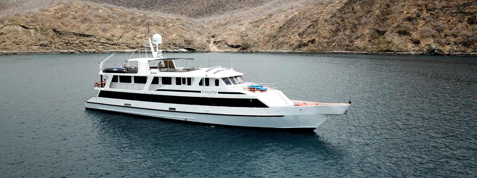The yacht, Integrity, is one of the most ecologically conscientious in the Galápagos, having received the Galápagos Quality Gold Seal for its sustainable policies, which include treating all waste water on board. Two Detroit/MTU 4-stroke diesel engines that are electronically controlled and vibration isolated allow for environmentally friendly, smooth cruising. The air conditioning, walk-in freezer and refrigerator, several electronic systems, water makers, and on-board wastewater treatment plant are all simply supported by the two generators that supply enough electricity. Integrity operates with an unmatched dedication to quality, safety, and conservation.