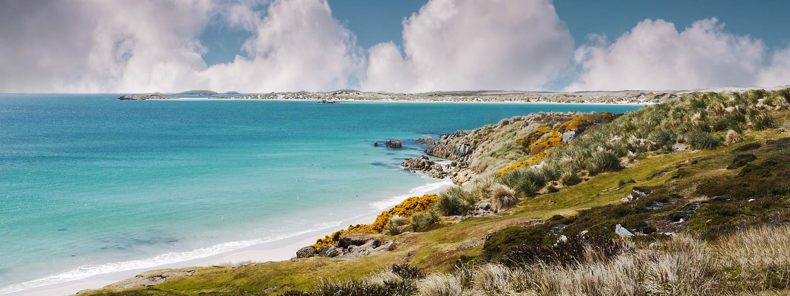 There is nowhere else in the world like the Falkland Islands. This archipelago is a remote, wind-swept place of stunning landscapes, dazzling white sand beaches, magnificent wildlife, and a rather gregarious mix of people. Over 200 islands surround the two main islands of West and East Falkland. These isolated and treeless shores are home to an overwhelming abundance of birdlife: albatross, penguins, caracaras, geese, and many others. Perhaps it was the very remoteness of the islands; the allure of its barren landscapes, pure in their austerity and colorful in their details, and the immensely large open skies that attracted settlers to its shores long ago, the islands have an accumulated a wealth of maritime and military history. More than three hundred shipwrecks litter its shores, while the stark white crosses of both British and Argentine soldiers stand as a silent reminder to the war of 1982. Numerous claims for the islands have been put forward in the course of their history. Nowadays the Falkland Islands are a self-governing British Overseas Territory.