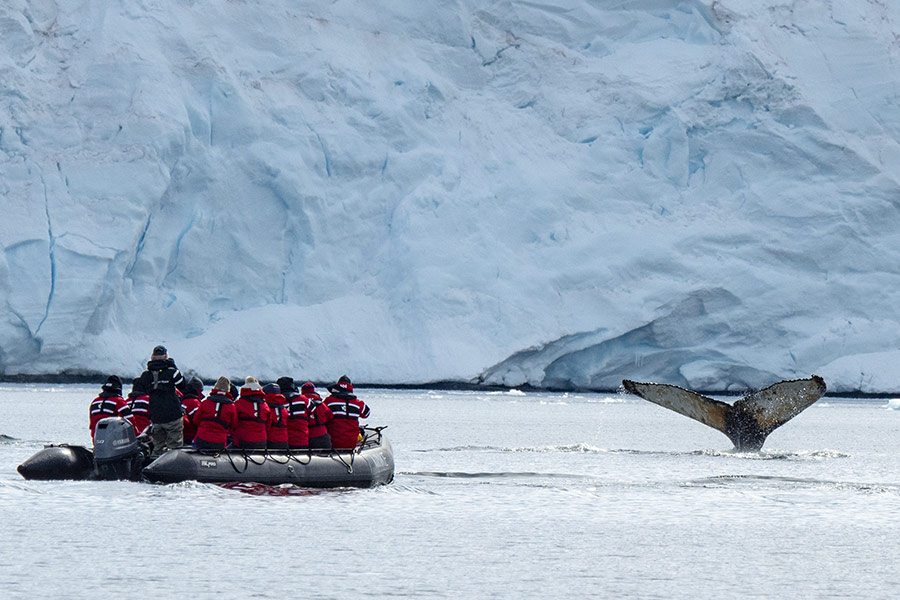 Experience the thrill of gliding through ice floes on a Zodiac alongside your expert Expedition Team, and immerse yourself in fascinating presentations on the region's history, wildlife, and geology. Watch for breaching whales and towering icebergs as you navigate this icy wilderness.