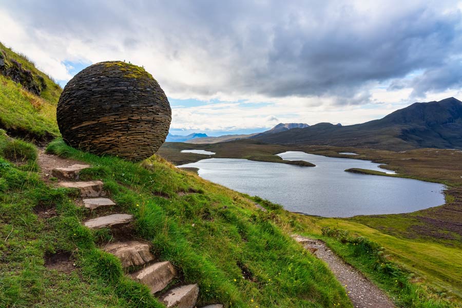 Small, remote, and rarely visited, Ullapool is the largest town in the Northwest Highlands, a corner of Scotland with a population density closer to Mongolia than Britain. Ullapool sits on a long, calm loch surrounded by forests and mountains and is the gateway to the Northwest Highlands UNESCO Geopark. The ancient rocks here tell the story of billions of years of gradual evolution – encompassing the rise of life on Earth, the movement of continents, and impacts from space – creating a striking, otherworldly landscape of isolated mountains, rolling hills, and deep lochs. Explore on foot and step back millions of years with each step.