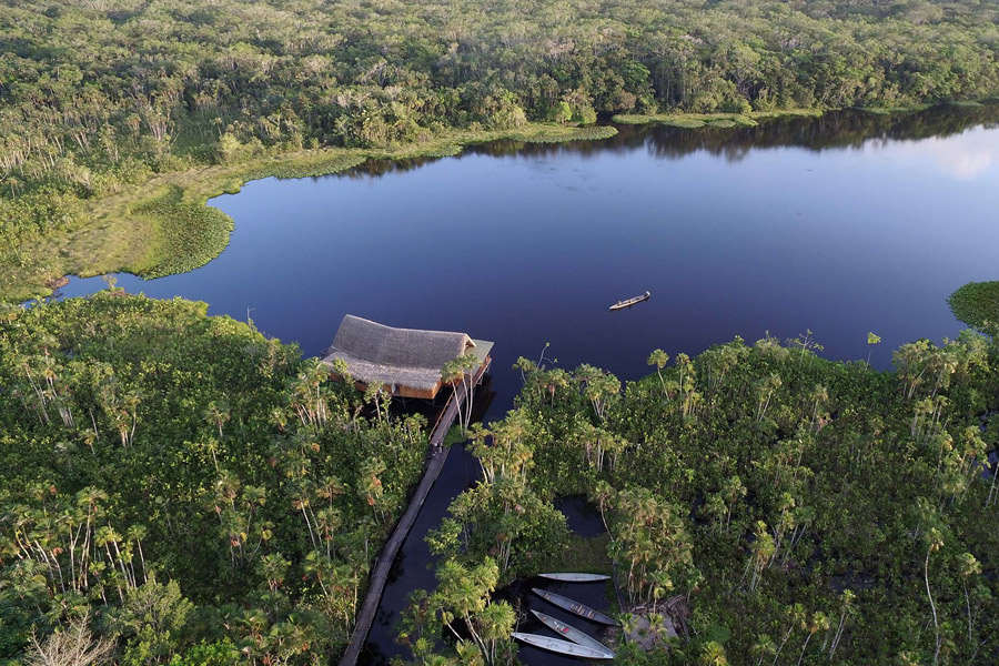 The journey commences with a picturesque boat ride along the Napo River, providing opportunities to spot wildlife. Upon disembarking from the small boat, your guide will lead you on a 30-minute walk through the jungle on an elevated platform—an ideal chance to absorb the vibrant energy of the jungle and, with luck, observe wildlife such as monkeys and birds. At the trail's end, you will board a canoe with your guide, who will paddle across the lake to reach the lodge.