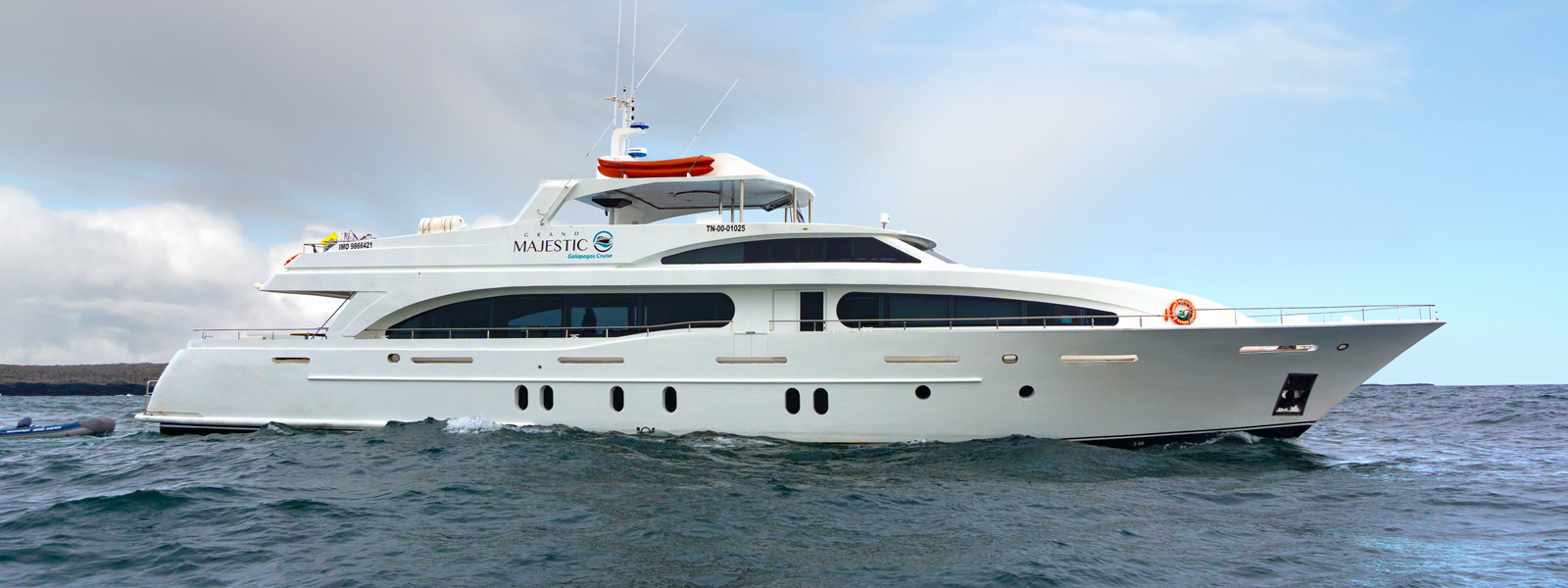 This elegant mega-yacht is a fast and elegant yacht that cruises exclusively in the Galapagos Islands. A certified bilingual naturalist guide, captain and experienced crew accompany each voyage, all dedicated to providing the highest quality service. The yacht accommodates up to 16 passengers in seven staterooms and one master suite that features his and hers bathrooms. All cabins are equipped with private bathrooms, hot water and air-conditioning. On board there are comfortable social areas, including a sun deck with Jacuzzi and al fresco dining.