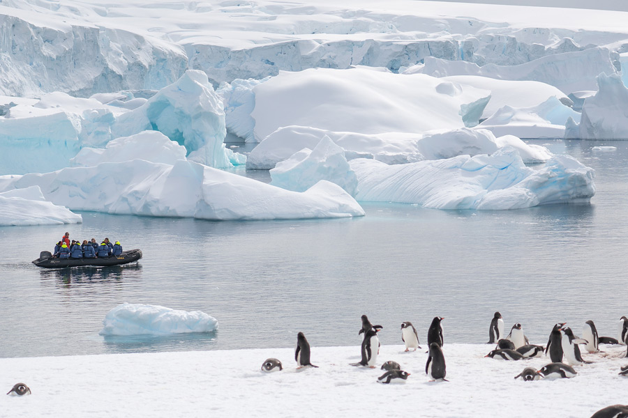 Cruise by Zodiacs amongst the beautifully sculpted icebergs and take excursions from the ship to explore local bays, channels and landing sites