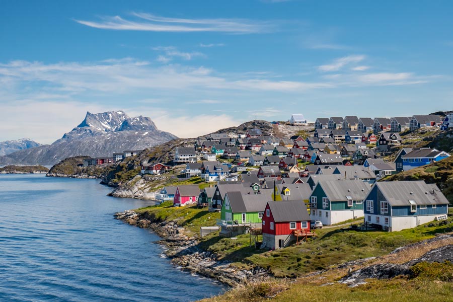When Erik Le Rouge, the exiled Norse chief, landed on the coast of Nuuk, he found a fertile and welcoming land dotted with fjords. He settled there with a group of his former countrymen, and the Norse remained the principal inhabitants until, over a period of 500 years, their population declined and gave way to the Inuit. Nuuk is situated at the mouth of one of the largest networks of fjords in the world, where the waters never freeze. The town spreads gently out towards the Davis Strait and enjoys an historic center that is particularly rich in national heritage. The vivid reds, blues, greens and yellows of the houses are a lively contrast to the somber waters of Greenland and serve to lift the spirits of the locals during the Winter months.