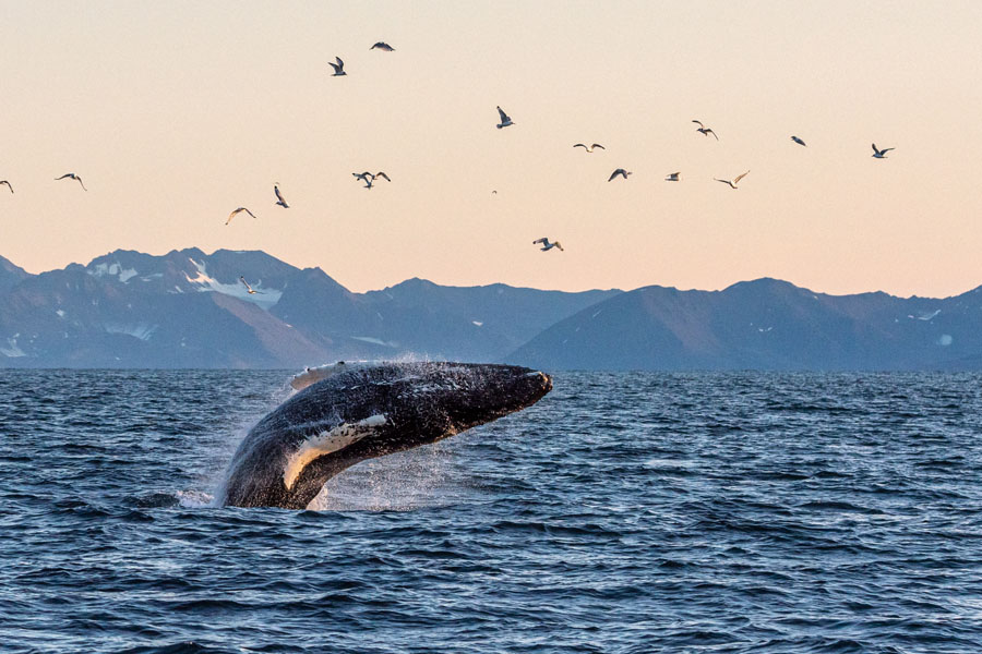 Explore the remote northern reaches of West Greenland, where traditional Inuit settlements cling to the rugged coastline and towering icebergs drift through the deep, clear waters. Every day presents new possibilities, guided by your expedition team, who will hunt for the perfect location to explore the stunning fjord systems by Zodiac. Vast fjord systems such as Uummannaq Fjord, offers endless opportunities for adventure, every corner revealing jaw-dropping views, monumental icebergs, and vibrant rock formations that beg to be explored. Whether you’re cruising silently through the ice-choked waters, hiking across the colourful tundra, or visiting one of the remote communities that dot the coast, the options for discovery are limitless. Kayakers can paddle among the floating icebergs while keeping an eye out for humpback and minke whales. With the spirit of true expedition cruising, this region invites you to immerse yourself in the untamed beauty of Greenland’s northern frontier.
