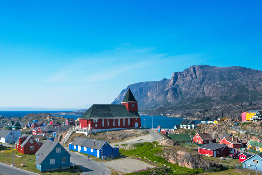 After a morning sailing north towards the Arctic Circle, we arrive in Sisimiut, Greenland’s second largest town. Sisimiut is located approximately 54 kilometres (33.5 miles) north of the Arctic Circle, meaning that during summer, you can experience the midnight sun here. The town is famous for the old blue church with the gate made of whale bone. In the cosy museum next door to the church, you will find an excellent reconstruction of an Inuit turf house as well as exhibits of local history and early life in Greenland.