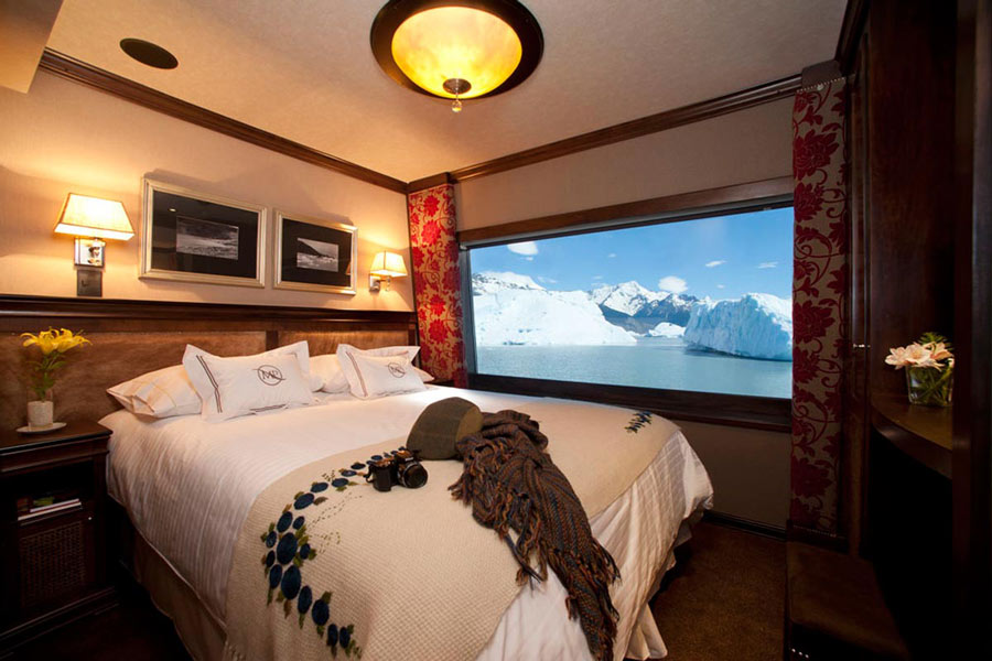 Next, the voyage continues toward the Canal de los Témpanos, en route to the iconic Perito Moreno Glacier. Upon arrival, guests disembark at Puerto Perito Moreno for a leisurely walk along designated pathways, providing stunning glacier views.