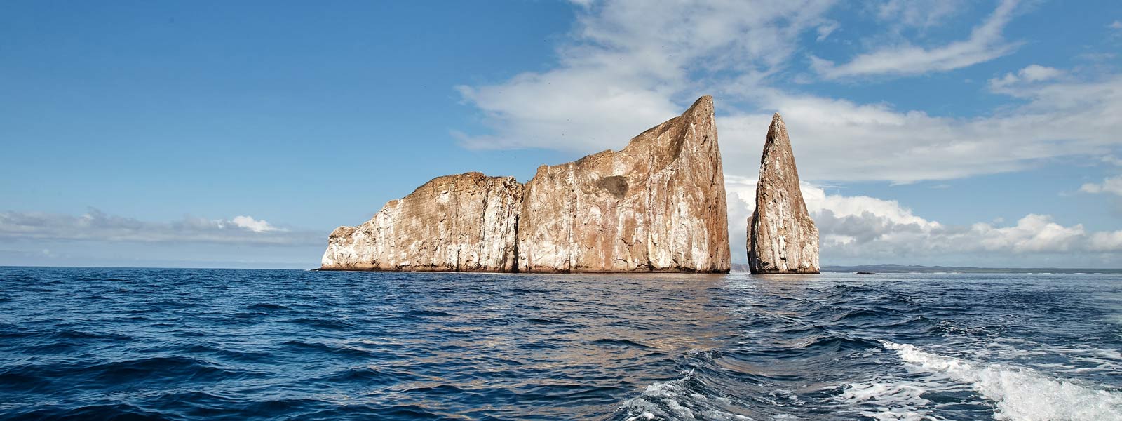 Kicker rock formation is located about two hours west of San Cristobal. The rocks protrude from the water and stand vertically hundreds of feet above the ocean, separated by a small channel. Although there are no landing areas, visitors can see a variety of marine life through circumnavigation and dinghy rides.