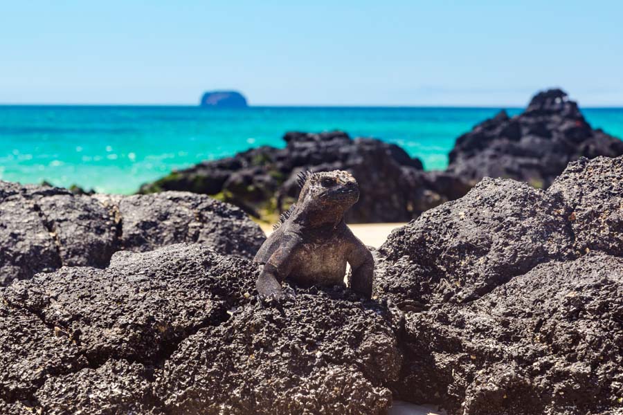 In the afternoon, you’ll explore Puerto Egas—also known as James Bay—where a salt crater, dark‑sand beach, and rocky tidal pools set the stage for abundant wildlife. Wander the shoreline spotting shorebirds and sun‑bathing marine iguanas, then grab your snorkel and dive in right from the beach. Beneath the surface, look for rays, turtles, and reef sharks before finishing your visit among the tide‑pools, alive with Sally Lightfoot crabs and more marine iguanas.