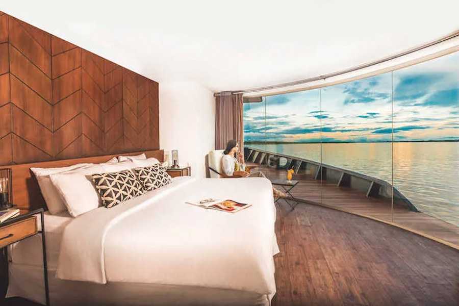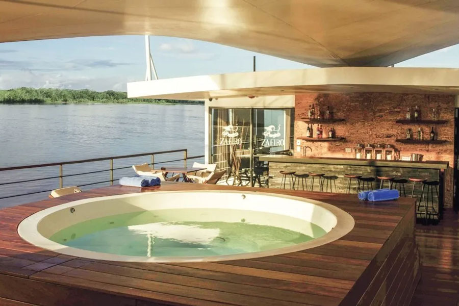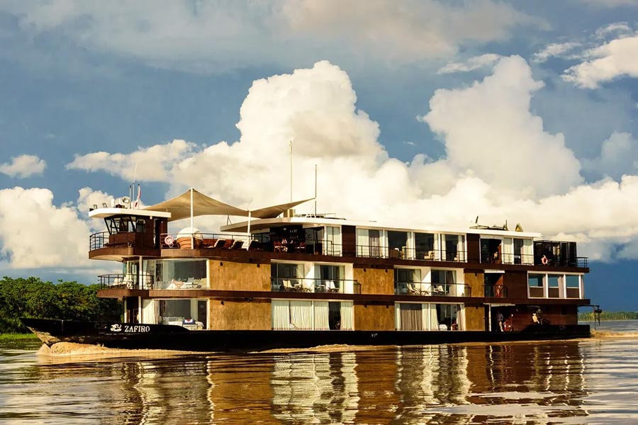 M/V Zafiro is a new luxury river boat which can swiftly slide through the mysteries of the jungle. All suites feature sitting areas and panoramic view overlooking the Amazon River. 4 interconnected suites are available for families.