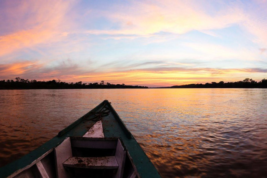 At midday, we’ll return to the ship for lunch on board, followed by some time to rest and recharge. Before the afternoon excursion, we invite you to attend an insightful talk about the endangered species of the Amazon, shedding light on conservation efforts in the region. Later, we’ll embark on a boat expedition along the Nahuapa River, where you’ll get the chance to fish for piranhas using local techniques and traditional equipment. As night falls, we’ll continue our adventure with a skiff excursion in search of alligators, tarantulas, frogs, and other nocturnal creatures. Back on board, unwind with live music as we sail into the evening before dinner.